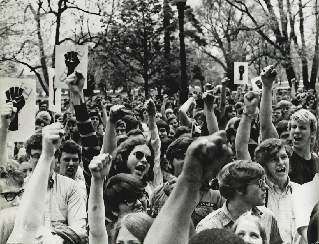 OSU was at the center of the volcanic age of protest that rocked American college campuses over the Vietnam War, the draft and social injustices. Despite the tragedy of the Kent State shootings by Ohio National Guardsmen that left several students dead, the far more intensive contention actually was taking place on the OSU campus in 1970 with incidents like the Six Hour War. The massive outcry for revolutional change in American society was uppermost in the student body and was too often a perceived challenge to discipline and order by the college and local civic leaders. People were restless, dissatisfied and seeking change. The whole civic order was a barely concealed internecine warfare of unrest between traditionalists and radicals.